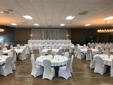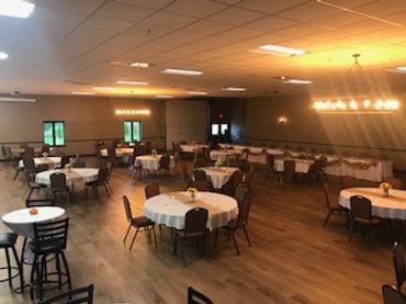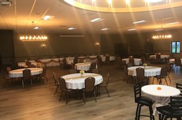Includes Broasted and/or Baked Chicken and choose between Ham or BBQ Ribs with all the trimmings served buffet or family style. Choose between Green Beans or Whole Kernel Corn. Beer (Bush Light) & soda in hall for 4 hours after dinner. Table linens for all the tables. Pizza Buffet at 9:45. Also includes complimentary audio and video for slideshows. Price includes the hall and all taxes and gratuities.